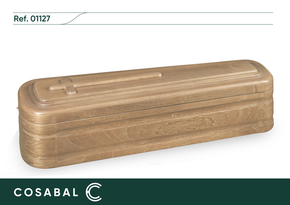 El ensamblaje de las cajas se efectúa con galces en todas sus uniones. Sin grapas. En la construcción de este ataúd no se ha utilizado ningún elemento metálico. Las juntas van selladas con resinas de Polivinilo.